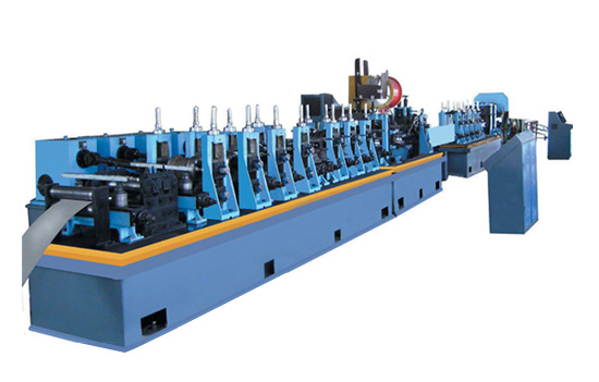 高頻焊管是熱軋卷板經(jīng)過成型機成型后,利用高頻電流的集膚效應(yīng)和鄰近效應(yīng),使管坯邊緣加熱熔化,在擠壓輥的作用下進行壓力焊接來實現(xiàn)生產(chǎn)。